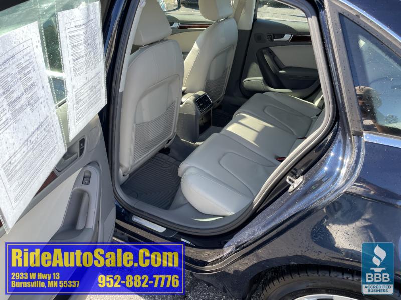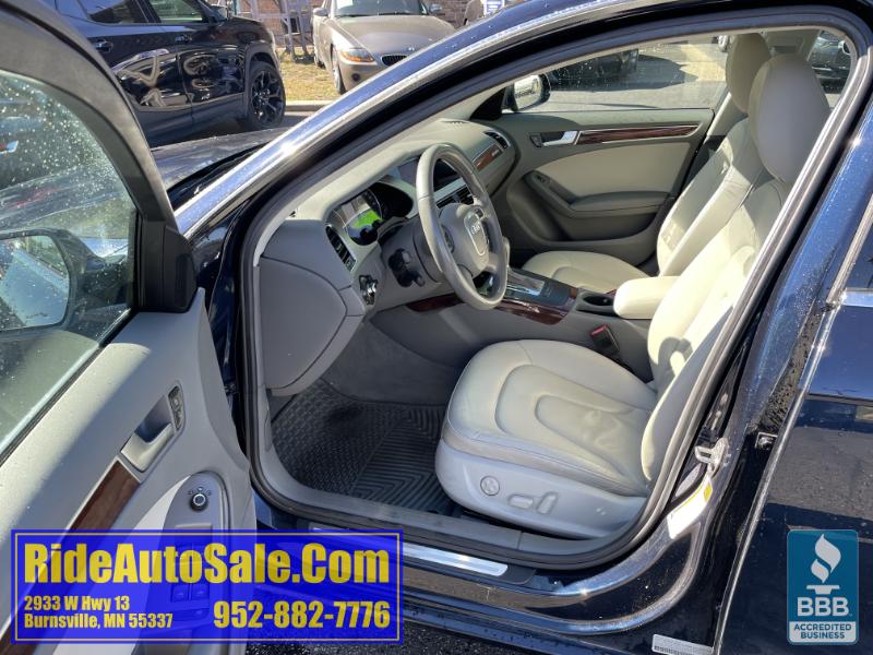 A4 Quattro Premium Plus Package, 4 door sedan, All Wheel Drive, Economical and reliable 2.0 liter turbocharged 4cyl with great MPG's, Automatic transmission, fully loaded with all power options including windows/locks/mirrors and power moon roof, Air conditioning with climate control, heated gray leather power bucket front seats with rear bench seating for 5, upgraded factory sound system, Alloy wheels with nice tires, good brakes and suspension, dual exhaust system, very sharp and really clean, runs and drives great, clean title vehicle with no accidents and only 2 previous owners, great maintenance history including a recent water pump replacement. Available FREE carfax.com history reports on our website, visit RideAutoSale.com!BE SURE TO WATCH A SHORT VIDEO OF THIS ACTUAL VEHICLE ON OUR WEB SITE AT RIDEAUTOSALE.COM OR SCROLL DOWN TO VIEW THE LINK BELOW...